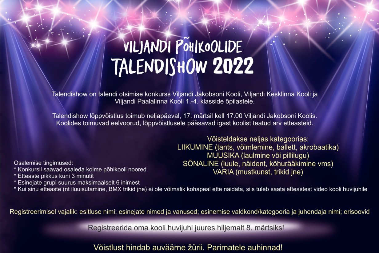 Tulemas on Viljandi põhikoolide talendishow. Sel aastal toimub see juba 3. korda.